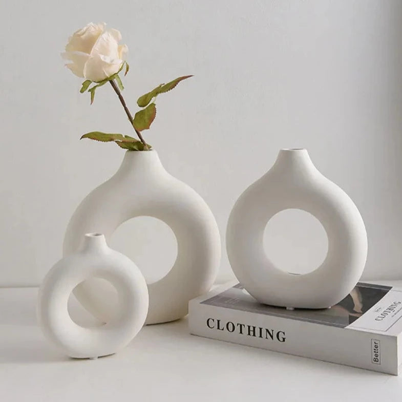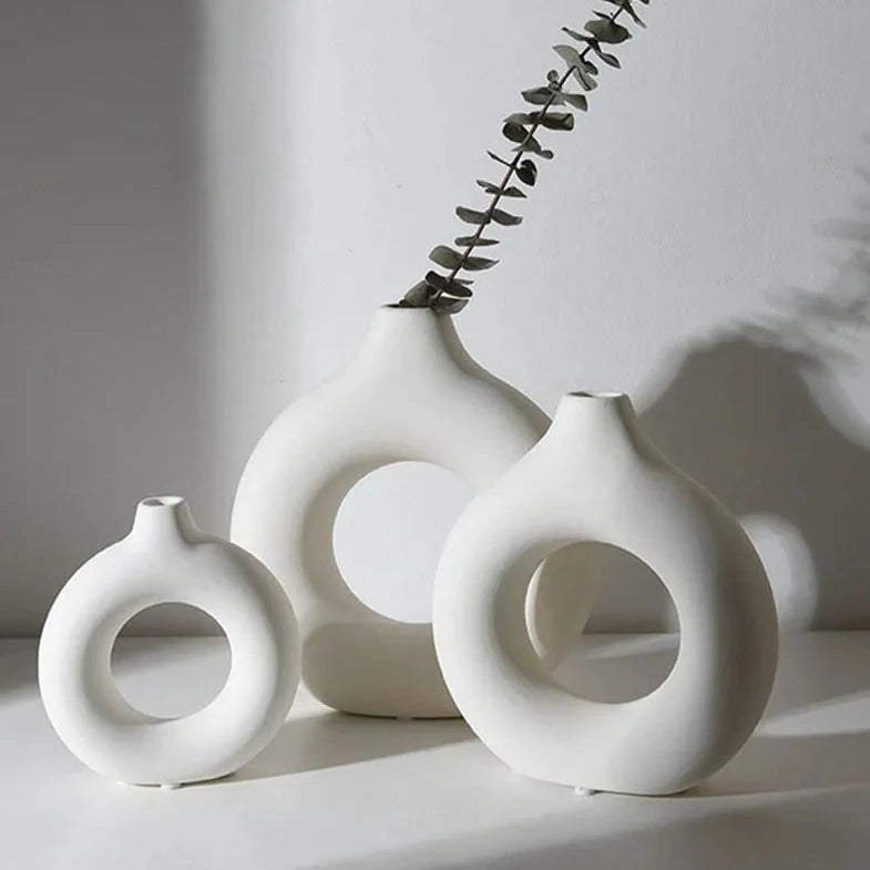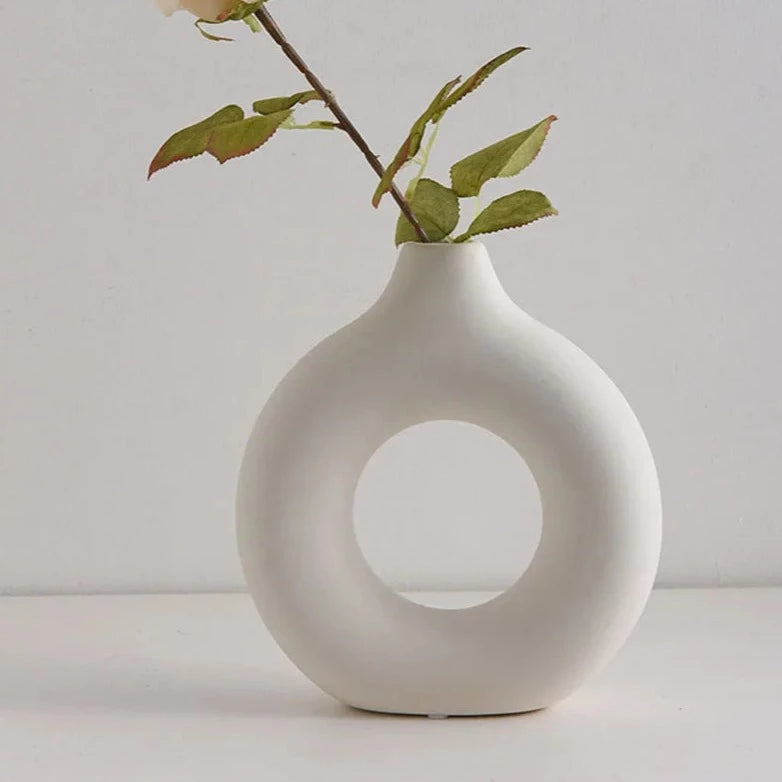 The Circular Ceramic Vase is a beautifully crafted piece that combines timeless elegance with a modern twist. Made from high-quality ceramic, this vase features a unique circular shape that adds a contemporary feel to any room. Its smooth, rounded contours and refined finish make it a standout decorative item, perfect for displaying flowers or as a standalone piece. The vase's versatile design allows it to complement a wide range of interior styles, from minimalist to more traditional decors. Ideal for those looking to add a touch of sophistication and artistry to their home, this circular ceramic vase is both a functional object and a piece of art.