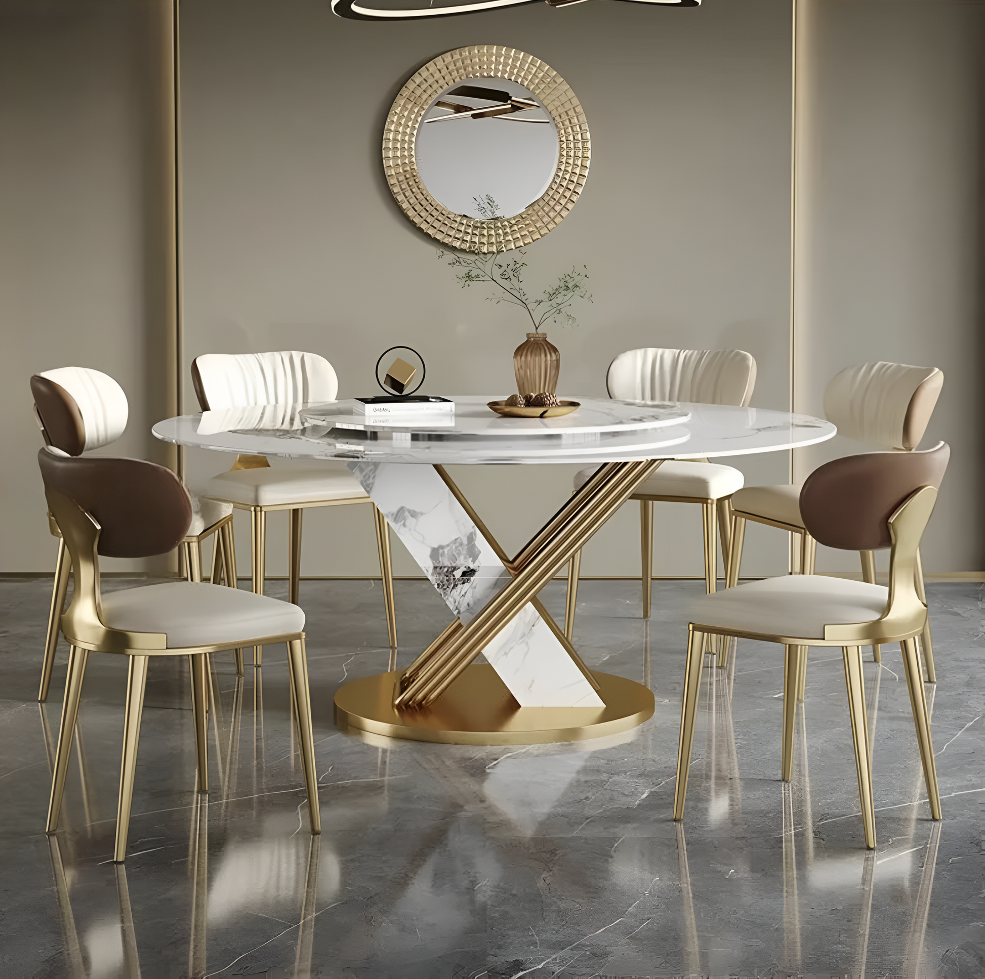 Elevate your dining experience with our Round Marble Dining Table, featuring a 360° rotating turntable top. This exquisite table combines the timeless elegance of marble with innovative functionality. The marble top, known for its durability and unique veining, adds a touch of luxury and sophistication to any dining area. The rotating turntable feature enhances the dining experience, allowing for easy access to dishes, perfect for family meals or entertaining guests. Its round shape fosters a more intimate and sociable dining environment. Ideal for those who appreciate both style and practicality, this Round Marble Dining Table with a rotating top is a standout piece that blends classic materials with modern convenience.